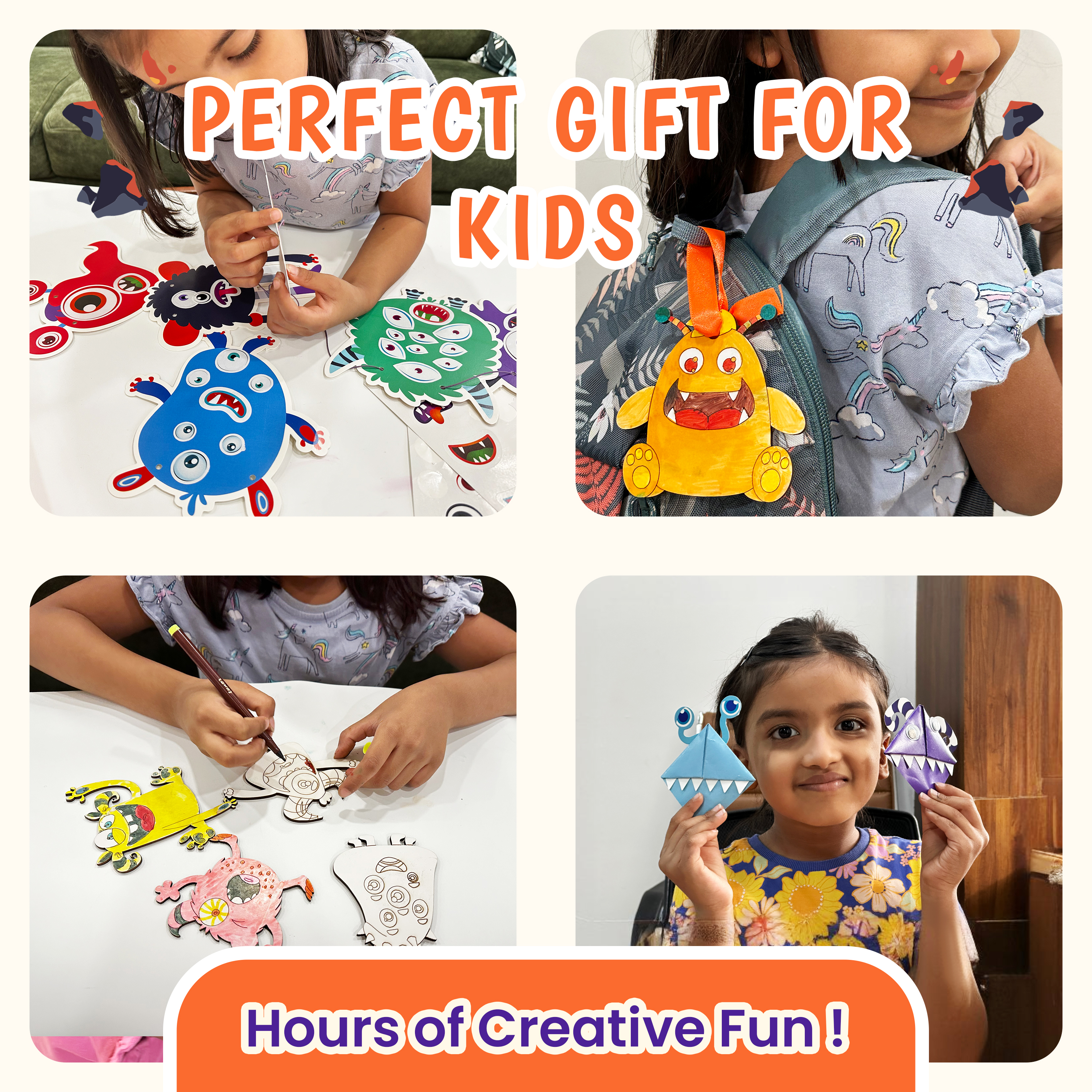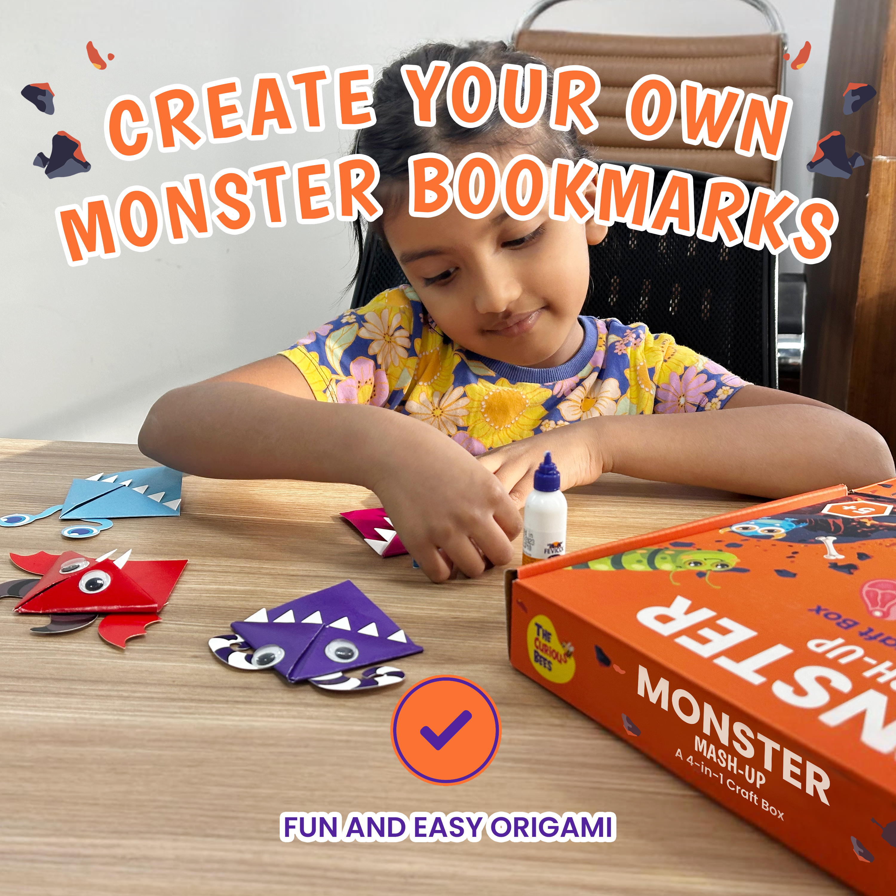 - Monster Bookmarks: Create four unique origami bookmarks. These playful bookmarks make reading even more enjoyable as they keep your place in your favourite stories.