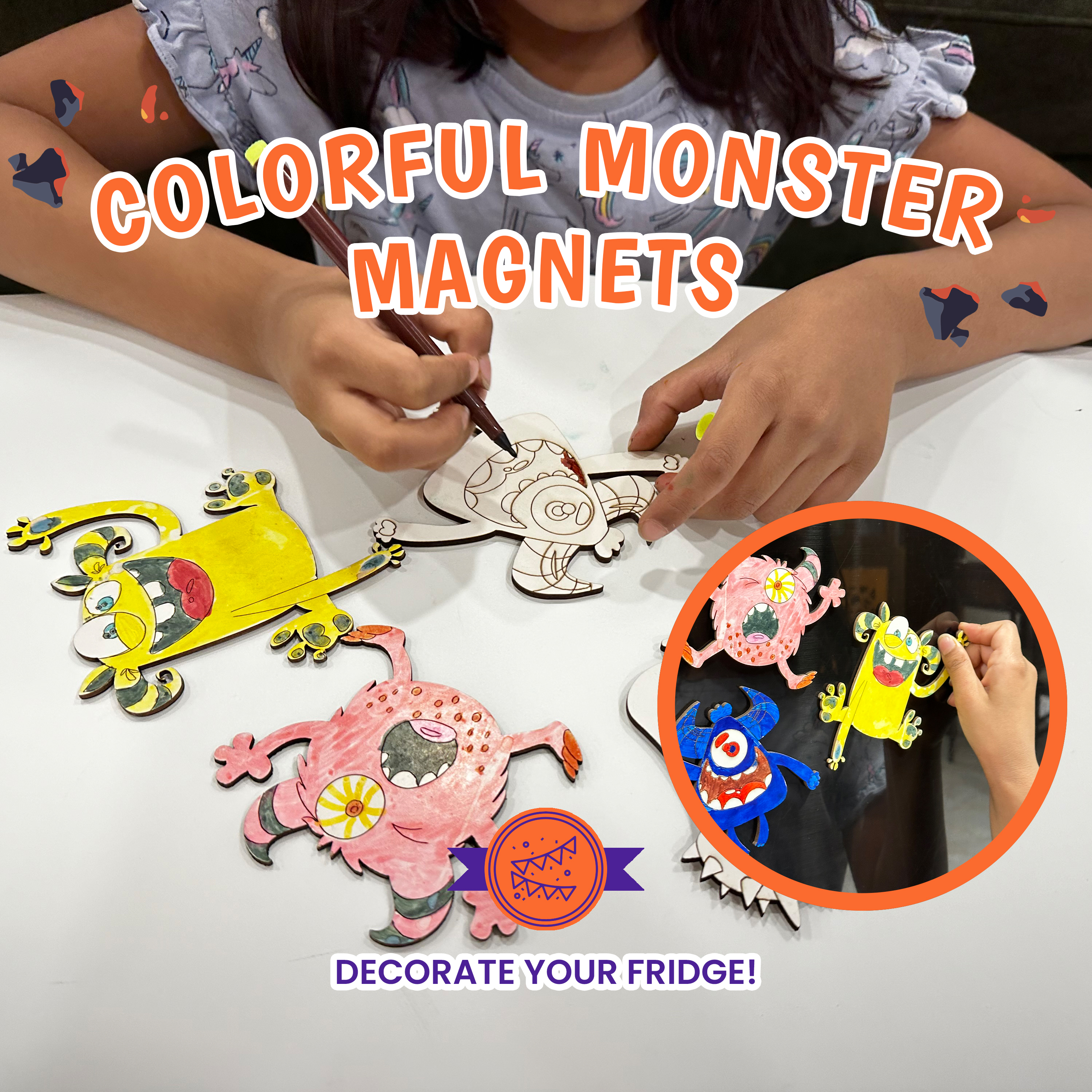 - Monster Magnets: Add a touch of spooky fun to your fridge or any steel surface with four monster-themed magnets. Colour them in to bring each monster to life and watch as they brighten up your home.