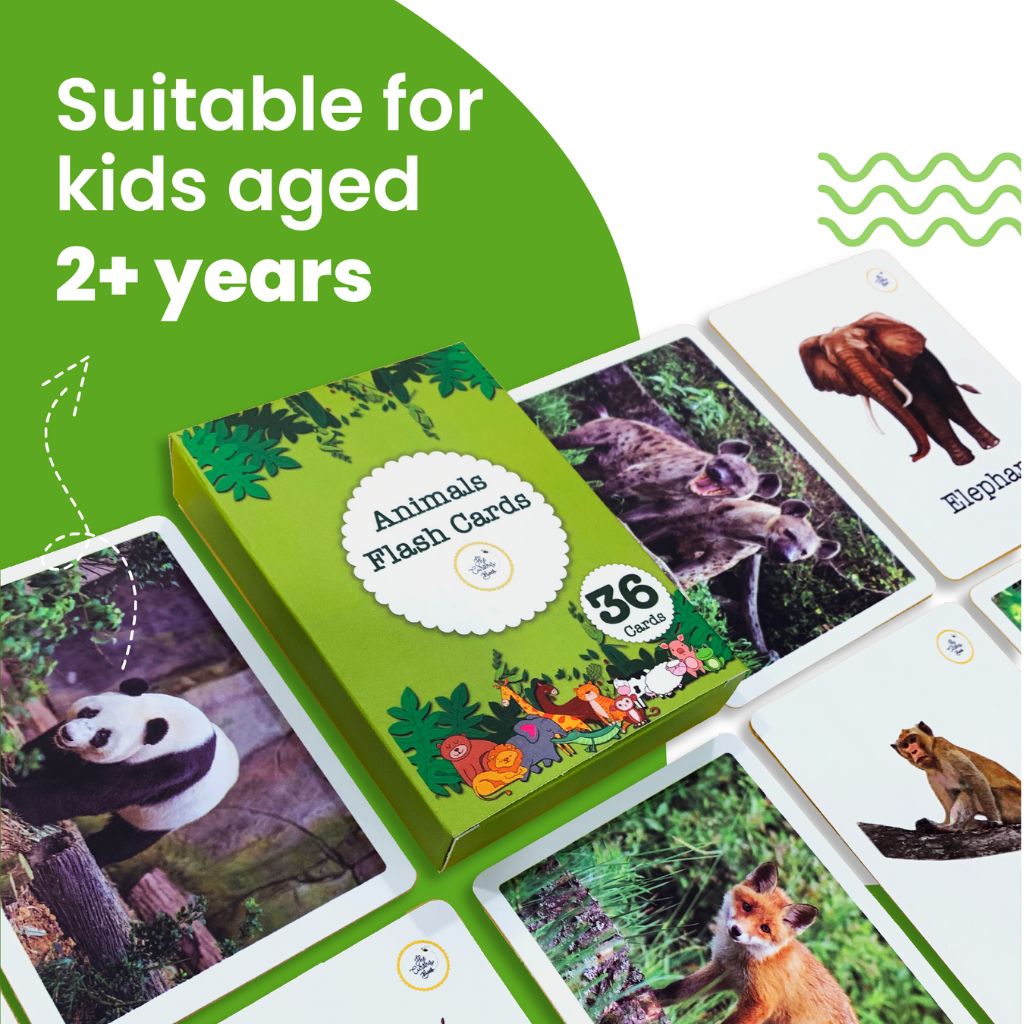 Animal Adventure: Lay out the Animals Flashcards and encourage your child to identify and mimic the sounds of each animal. Have them share interesting facts about the animals or create imaginative stories based on the illustrations.