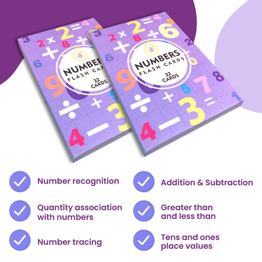 Our Numbers Flash Cards set consists of 32 cards in total, carefully crafted to provide a comprehensive learning experience for young minds. Among them are 20 vibrant number cards that cover numbers 1 to 20, ensuring a solid foundation for numeracy skills. But that's not all - we go the extra mile by incorporating essential concepts like addition, subtraction, less than, greater than, and place values. We want your child to excel in mathematics while enjoying every moment of it.