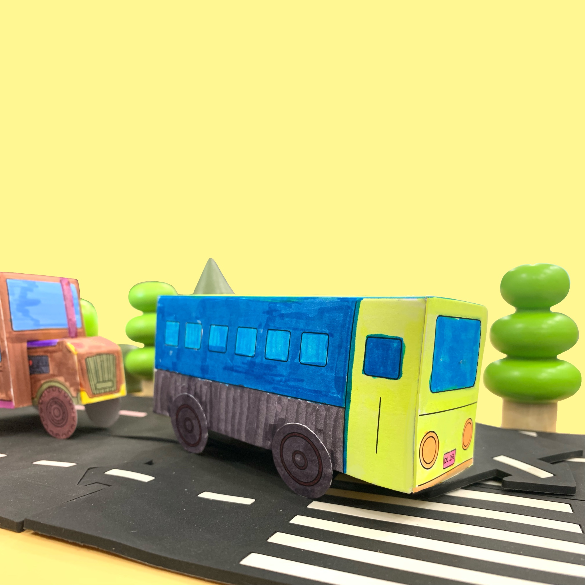 2. Choose Your Ride: Select one of the four pre-printed vehicle templates – Car, Bus, Tractor, or Police Car. Each template is expertly designed for hassle-free crafting.