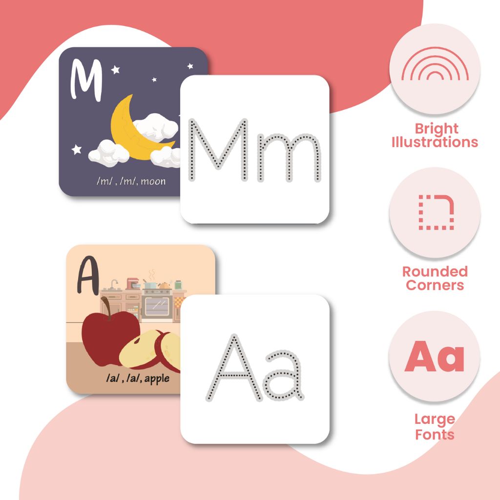Versatile Learning Aid: Our Alphabet Flash Cards are suitable for a wide range of ages and stages - from babies to preschool kids, Pre KG to kindergarten classes, and even homeschoolers. They serve as an excellent alternative to traditional Alphabet Tracing boards, encouraging interactive and engaging learning experiences.