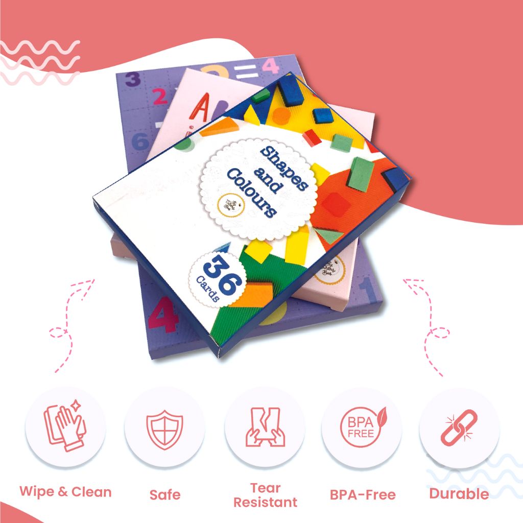 Shapes and Colors Flashcard Set: Help your children grasp the fascinating world of shapes and colors with this unique set of 36 flashcards. Each card features a vivid illustration on one side and an engaging activity on the other, enhancing memory, visual sense, spatial understanding, and cognitive development.