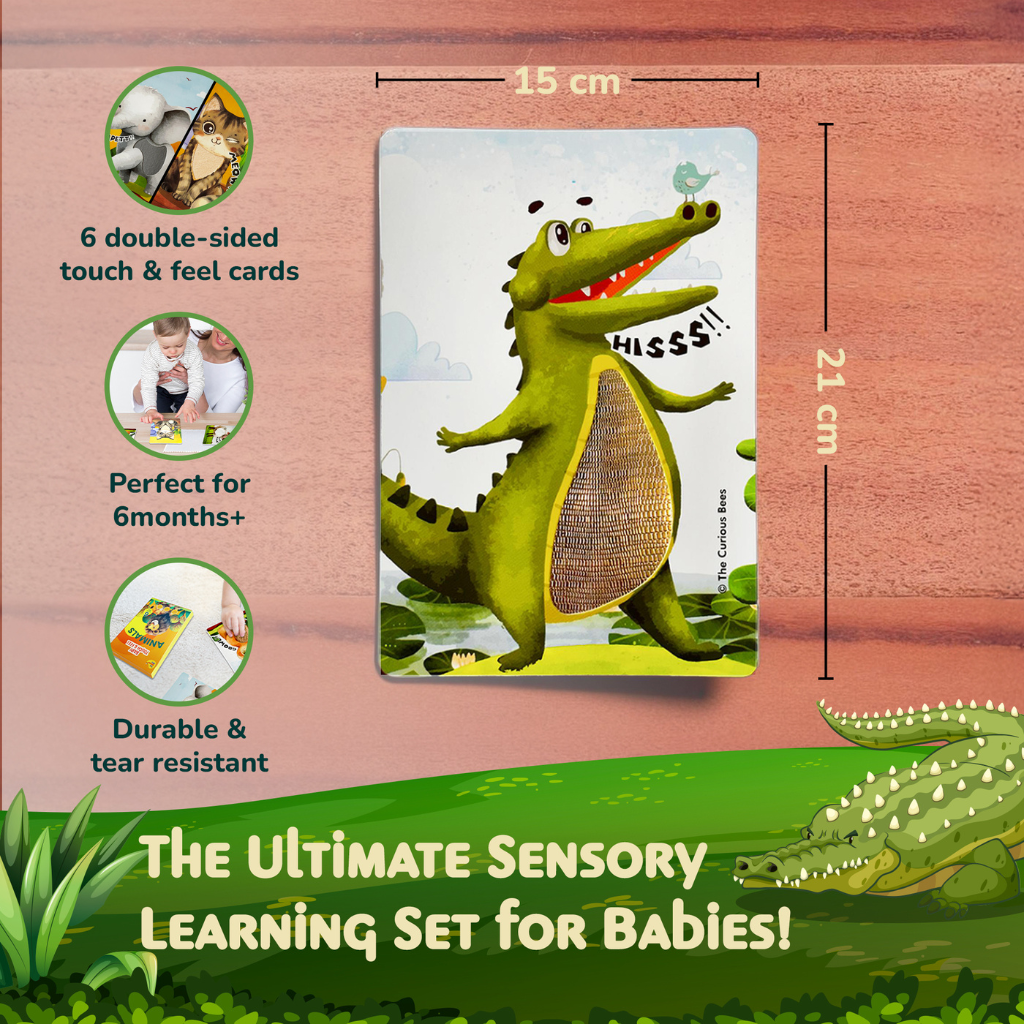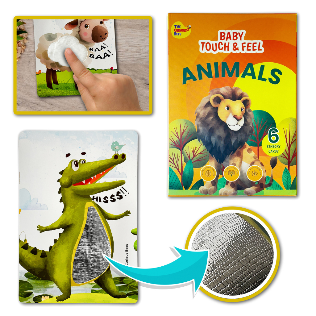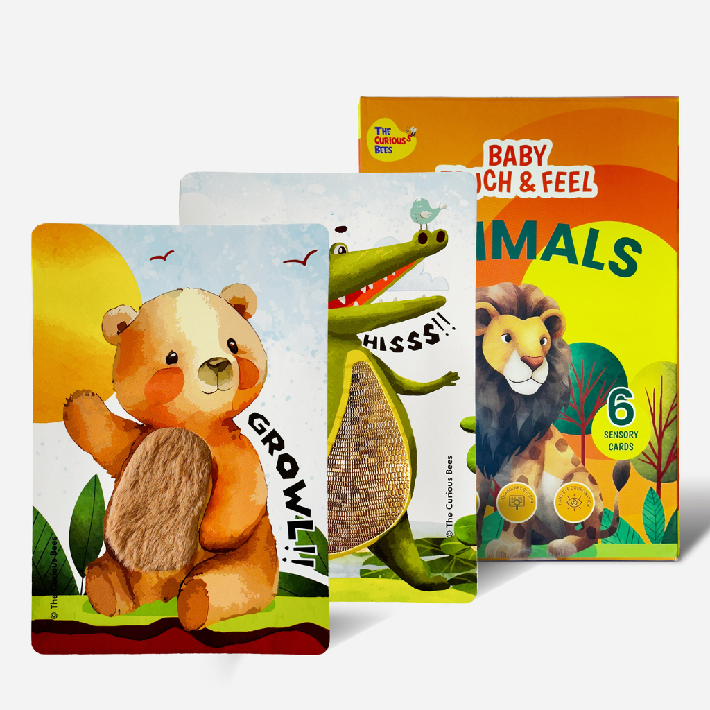 Discover a world of interactive learning with The Curious Bees’ Touch & Feel Flash Cards - Animals, designed especially for toddlers aged 1-3 years. This innovative educational tool features 6 double-sided flash cards showcasing 12 vibrant animal images that invite little ones to explore and learn through touch. Each card is thoughtfully crafted with a matte finish, rounded corners, and an A5 size perfect for tiny hands.