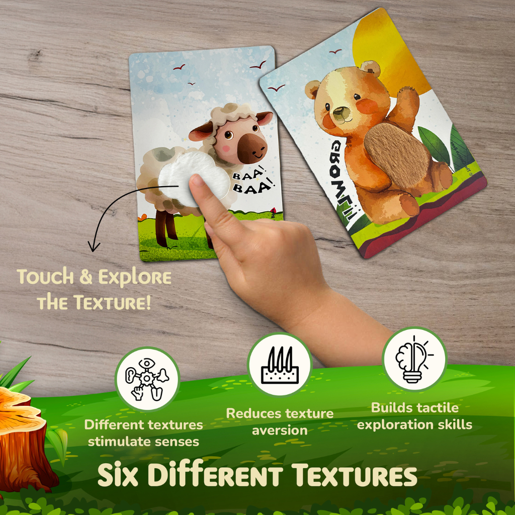 - Explore the Textures: Encourage your toddler to run their fingers over each card and describe how it feels—soft, rough, smooth, or bumpy.