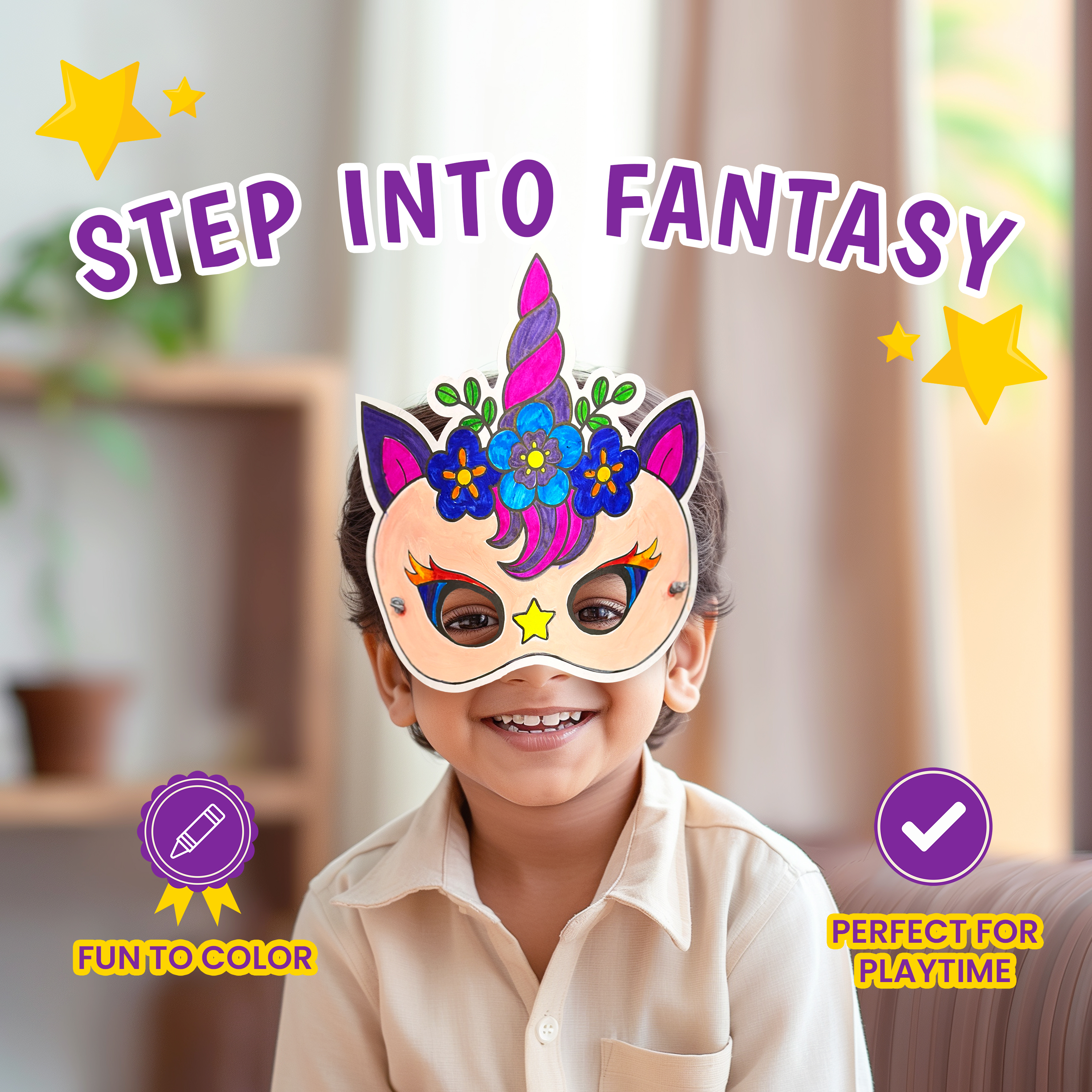 4. Unicorn Paper Mask: Step into a world of fantasy with our unicorn paper mask. Perfect for colouring, this mask transforms playtime into a magical adventure.