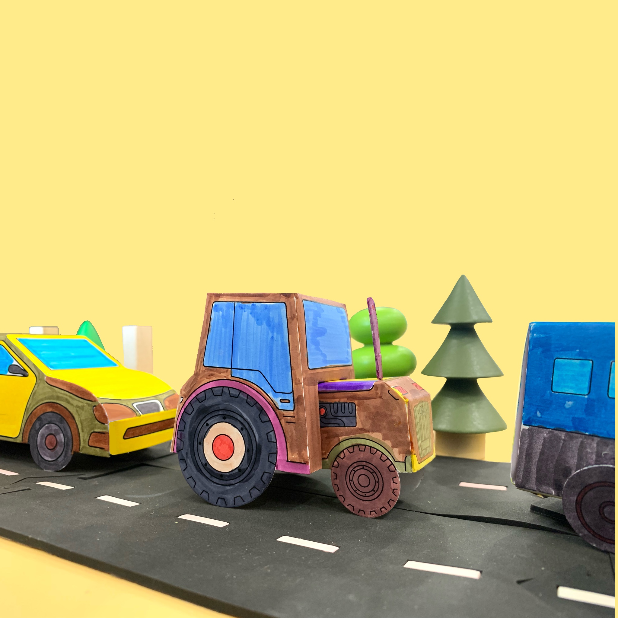 2. Choose Your Ride: Select one of the four pre-printed vehicle templates – Car, Bus, Tractor, or Police Car. Each template is expertly designed for hassle-free crafting.